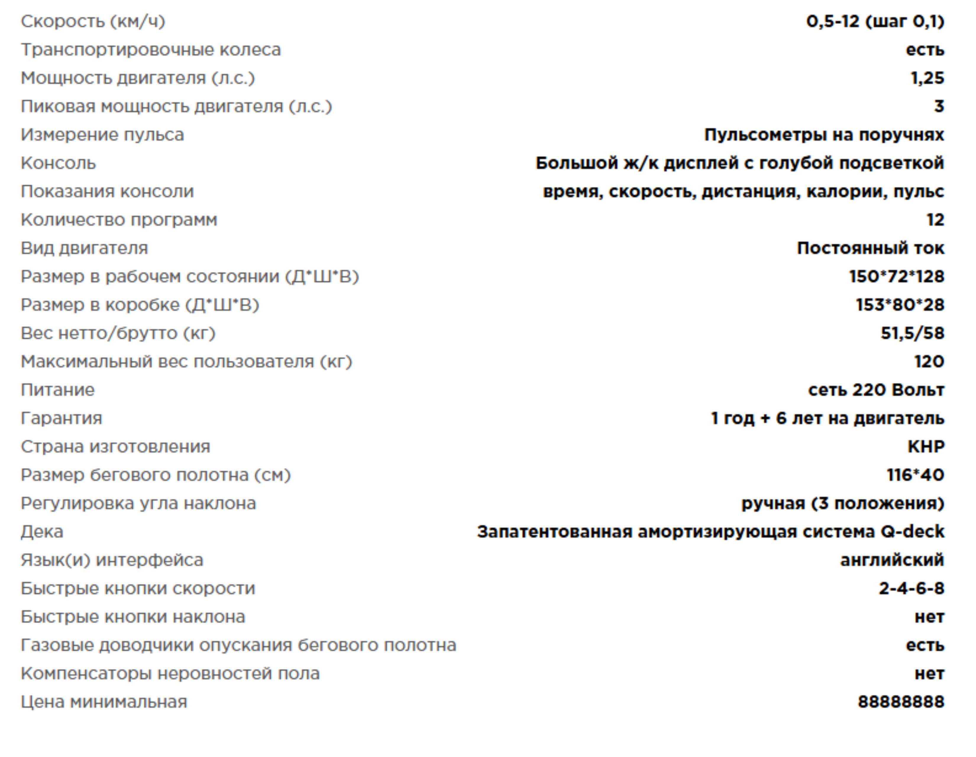 Дорожка максимально продумана с точки зрения безопасности и хранения. С помощью ключа безопасности Вы всегда можете прекратить тренировку, а в случае неожиданного срыва при беге с бегового полотна, дорожка экстренно остановится, что поможет вам избежать получения травм. Для наиболее комфортного перемещения дорожка снабжена транспортировочными роликами и вы сможете без труда переместить тренажер в угол комнаты.Дорожка занимает минимальное пространство в сложенном виде, а сложить ее сможет даже обычный человек, настолько легко она складывается. Газовые доводчики опускания бегового полотна позволят плавно опустить беговую дорожку без повреждения поверхности пола.