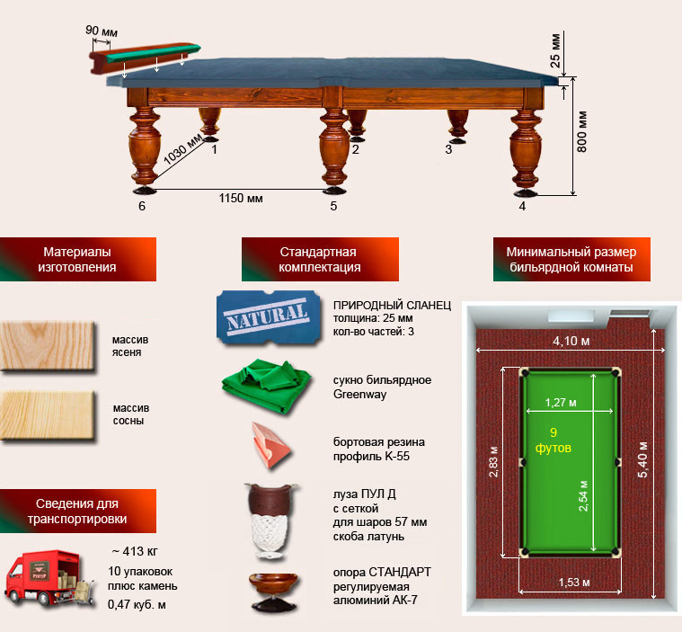 Игра, инвентарь для которой представлен на фото, имеет очень древнее происхождение, однако не утратила своей популярности и по сей день. Наш интернет-магазин предлагает выгодно купить все необходимое для игры в бильярд. Например, на такое изделие, как бильярдный стол «виконт» 9 футов, пул, сосна, ольха, сланец, цена составляет всего 204 929 руб. рублей. И это не кратковременная акция, а постоянный прайс на товар с артикулом .