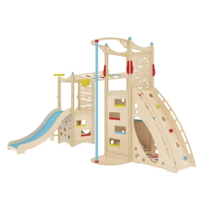 - Универсальный игровой комплекс обеспечивает нагрузку на разные группы мышц, позволяя ребенку полноценно развиваться физически.