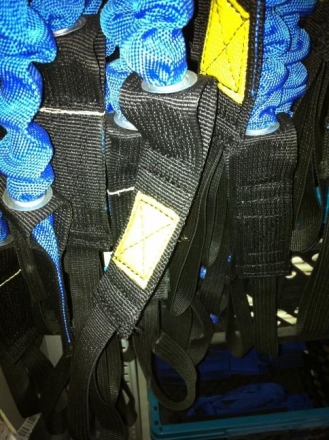 Прикрепляете шнур к поясу и с статичному предмету( стена, труба и т.д.) Начинаете движение растягивая шнур и усиливая сопротивление. Полезно отрабатывать движение через препятствия: барьеры или степ-платформы. Отлично тренируется техника бокового движения. Напряжение работает в обе стороны движения.