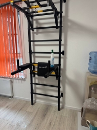 - Крепления к стене предусмотрены в 6-ти местах, для монтажа используется 12 болтов. Опоры имеются не только по краям, но и посередине стоек, чтобы тренажер не шатался и не изгибался во время занятий. Перекладины произведены из металла и покрыты ПВХ резиной для более приятных тактильных ощущений во время тренировок. Кроме того, такое покрытие защищает перекладины от появления царапин при навешивании дополнительного оборудования. А чтобы защитить от повреждений покрытия пола и стен вашей квартиры, на вертикальных стойках имеются пластиковые заглушки. Окрашивается тренажер порошковой краской, устойчивой к истиранию, с возможностью выбора более подходящего вам цвета.