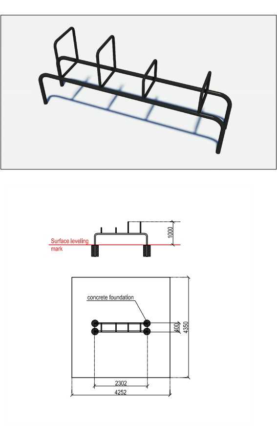 - -Конструкция имеет четыре полукольца с расстояниями 600 мм, 500 мм и 500 мм между собой.