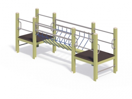 Габариты: 4100*1100*1535 Комплекс состоит из дух башен соединенных подвесным качающимся мостом. На башнях установлены ручки вспомогательные и перекладины