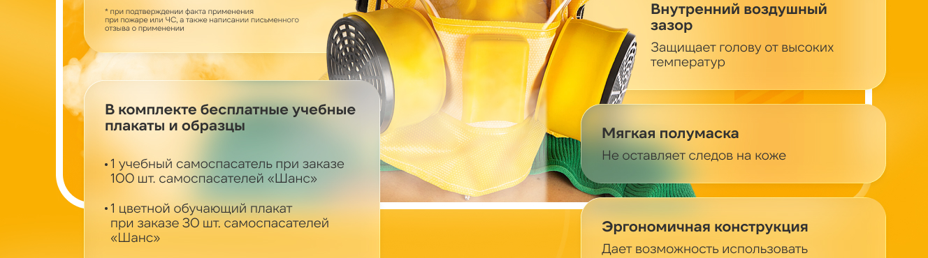 Универсальный малогабаритный самоспасатель Шанс-Е 00000000046 защищает органы дыхания и зрения людей от токсичных продуктов горения (в том числе от монооксида углерода) при эвакуации из задымлённых помещений во время пожара (при пожаре), а также от других опасных химических веществ (паров, газов, аэрозолей) в случаях техногенных аварий и террористических актов.