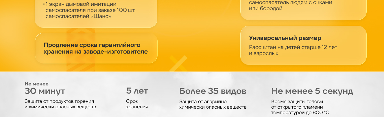 Время защитного действия при пожаре и от АХОВ - не менее 30 минут.